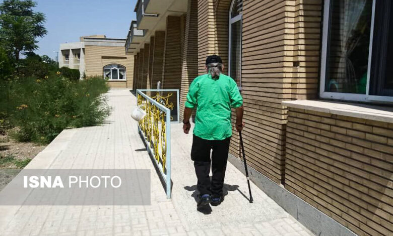 روی نیمکت حیاط آسایشگاه نشسته و عصای دستش را به پایش تکیه داده است. موهای بلند جو گندمی، ریشهای بلند سفید و کلاه نقابداری که روی صورتش سایه انداخته ظاهرش را از دیگر مددجویان کمی متمایز کرده است.