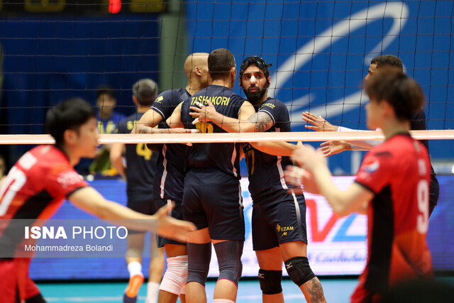 ست اول این دیدار پایاپای پیش رفت اما در نهایت ژاپن ۲۵ بر ۲۱ پیروز شد. در ست دوم هر چند پیکان ابتدا پیش بود اما ژاپن فاصله را جبران کرد و ۲۸ بر ۲۶ این ست را هم به نفع خود تمام کرد. پیکان که نمیخواست بازنده این دیدار باشد ست سوم را با قدرت شروع کرد و ۲۵ بر ۱۳ برنده شد و ست چهارم را هم ۲۵ بر ۲۰ به سود خود به پایان رساند تا ست پنجم قهرمان را تعیین کند.